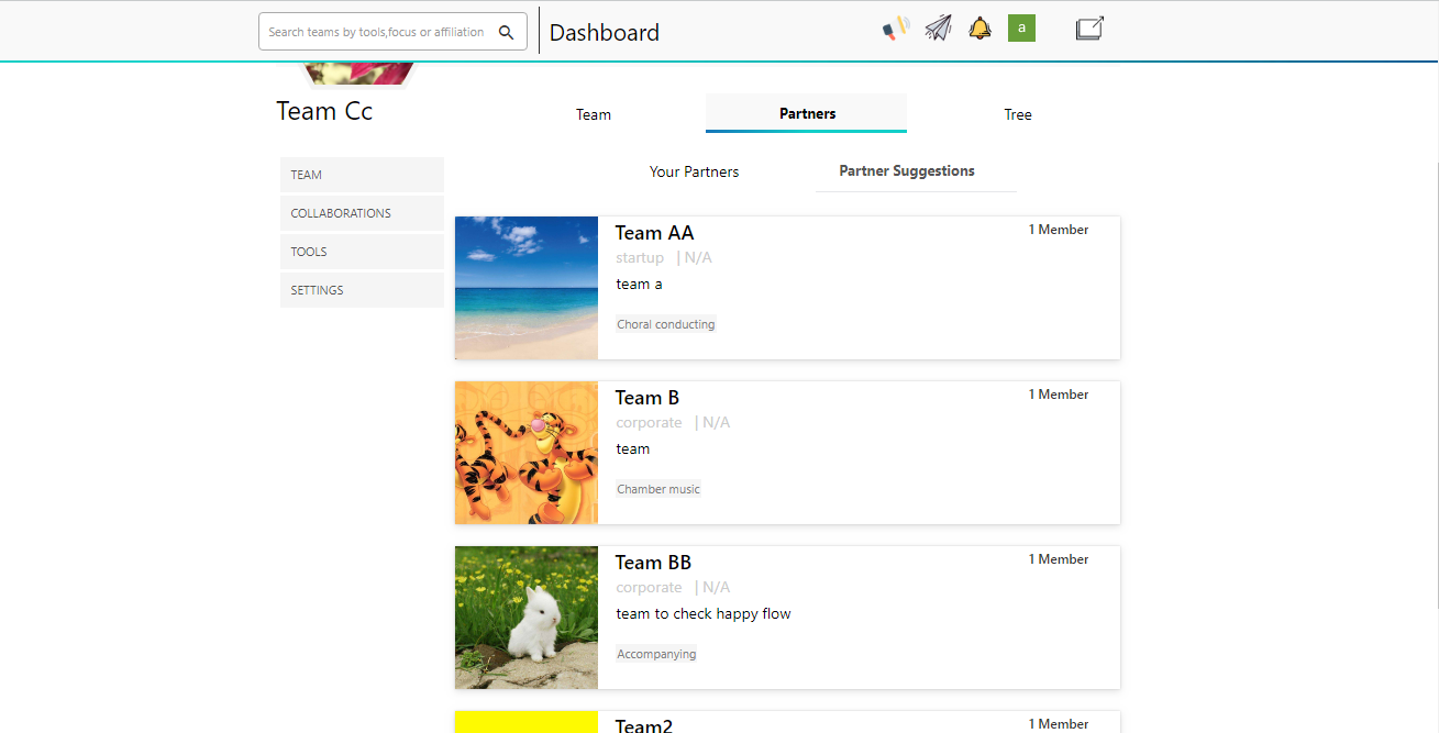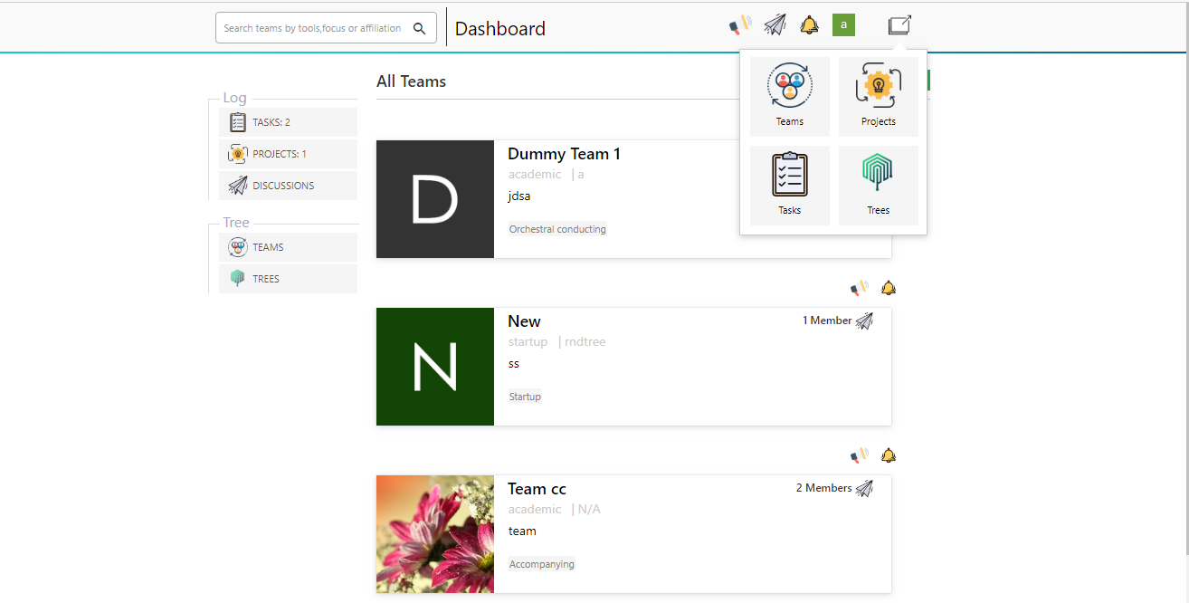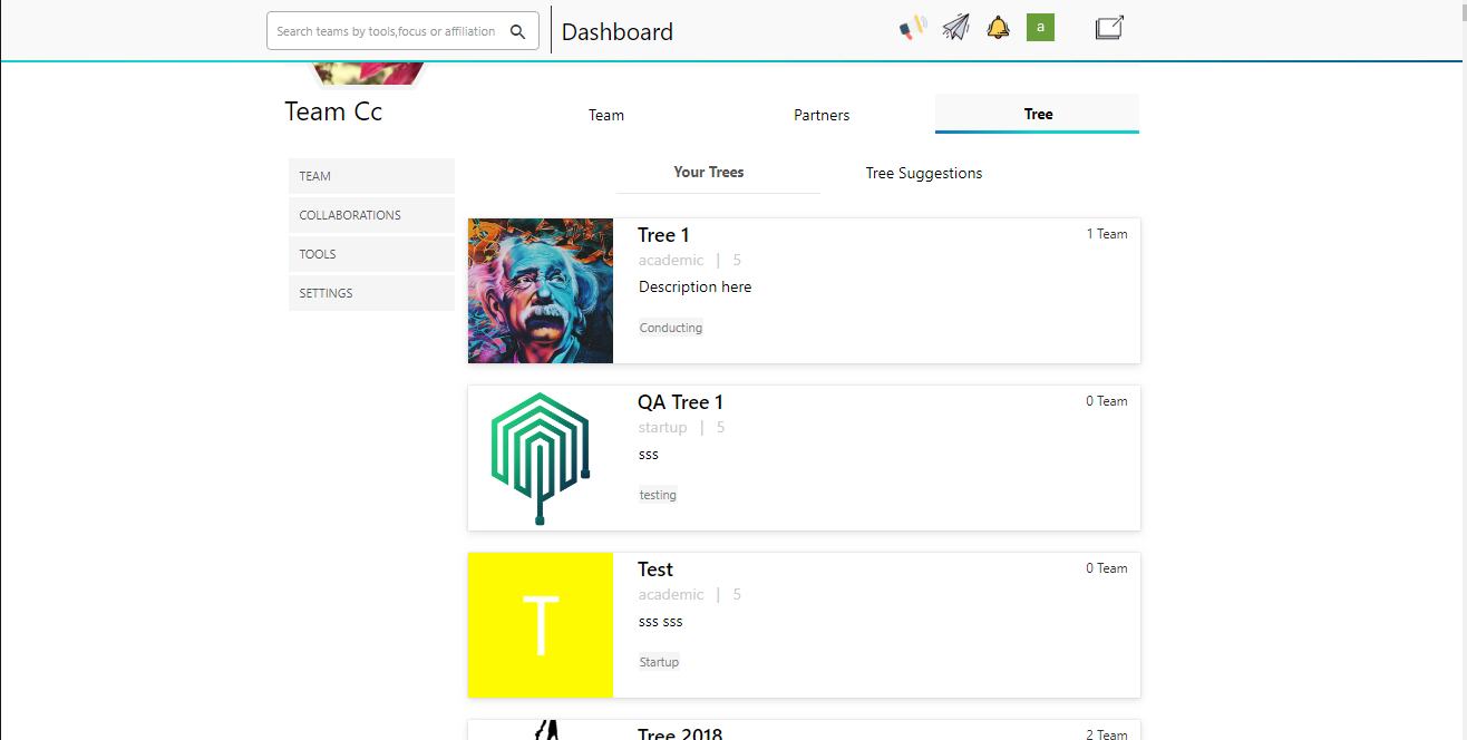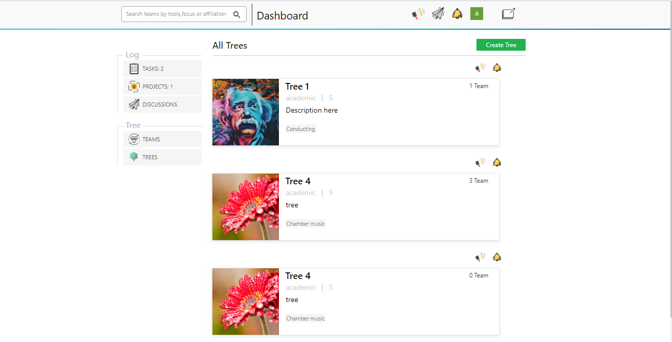 - Team and Group Creation – Users can form Teams and Groups (Trees) for structured collaboration.